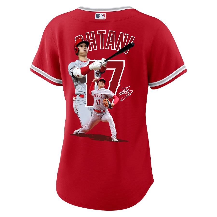 Shohei Ohtani 17 Los Angeles Angels Signed Decisive Blow 2023 Alternate Women Baseball Jersey – Red