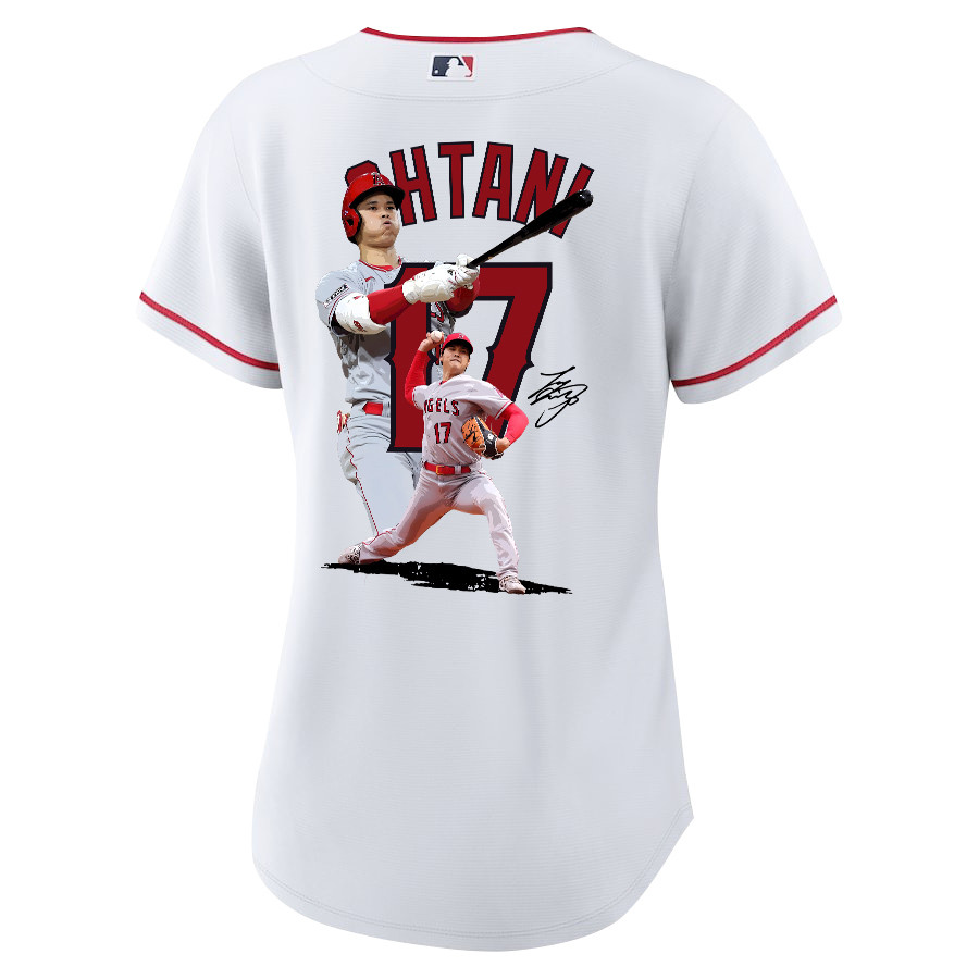 Shohei Ohtani 17 Los Angeles Angels Signed Decisive Blow 2023 Home Women Baseball Jersey – White