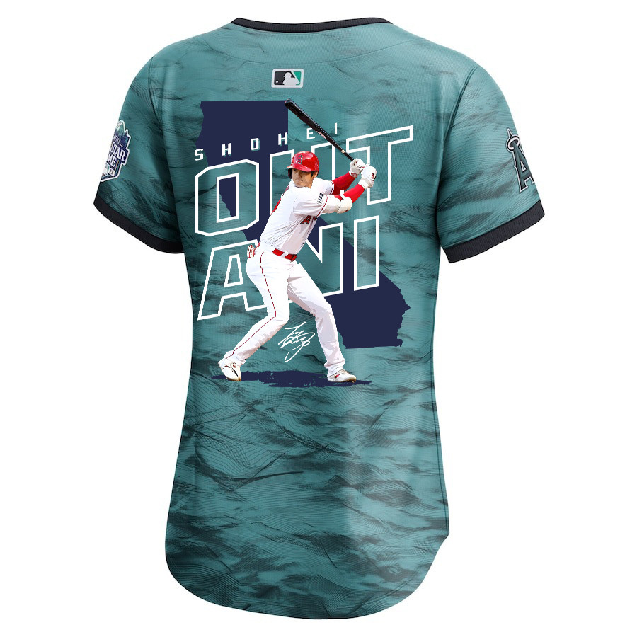 Shohei Ohtani 17 Los Angeles Angels Signed Map 2023 All-Star Game Limited Player Women Baseball Jersey – Teal