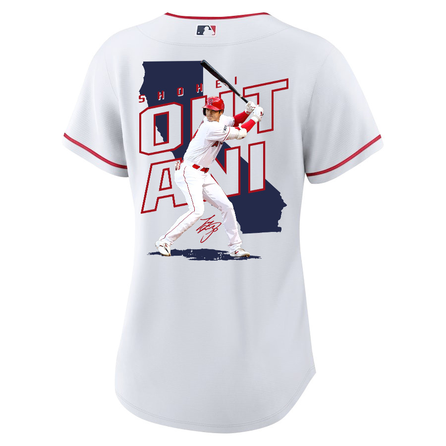Shohei Ohtani 17 Los Angeles Angels Signed Map 2023 Home Player Women Baseball Jersey – White