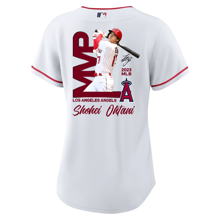 Shohei Ohtani 17 Los Angeles Angels Signed MVP 2023 Home Player Women Baseball Jersey – White