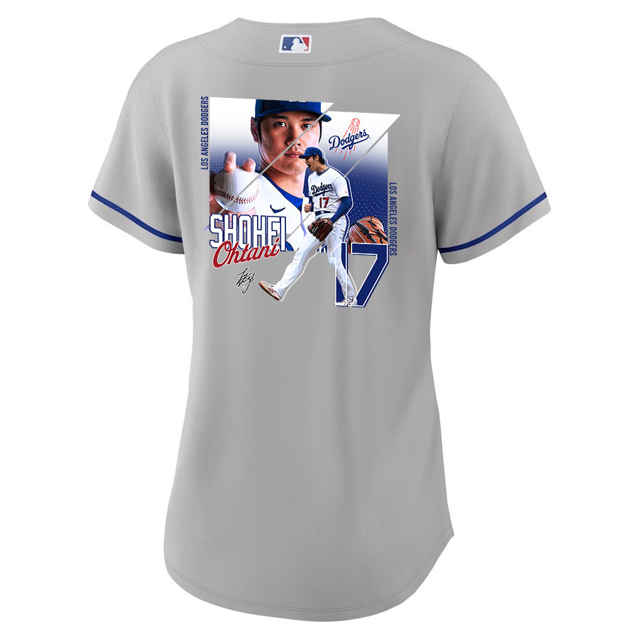 Shohei Ohtani 17 Los Angeles Dodgers Signed Greatest Sho On Earth 2023 Road Women Baseball Jersey – Gray