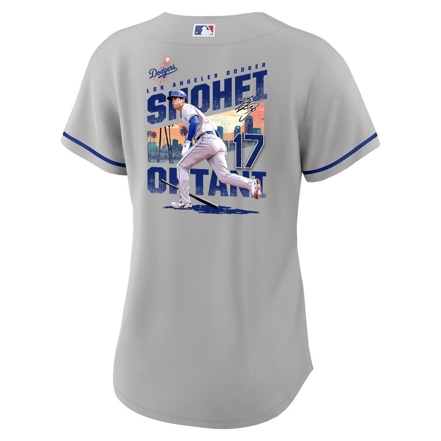 Shohei Ohtani 17 Los Angeles Dodgers Signed Homerun 2023 Road Women Baseball Jersey – Gray