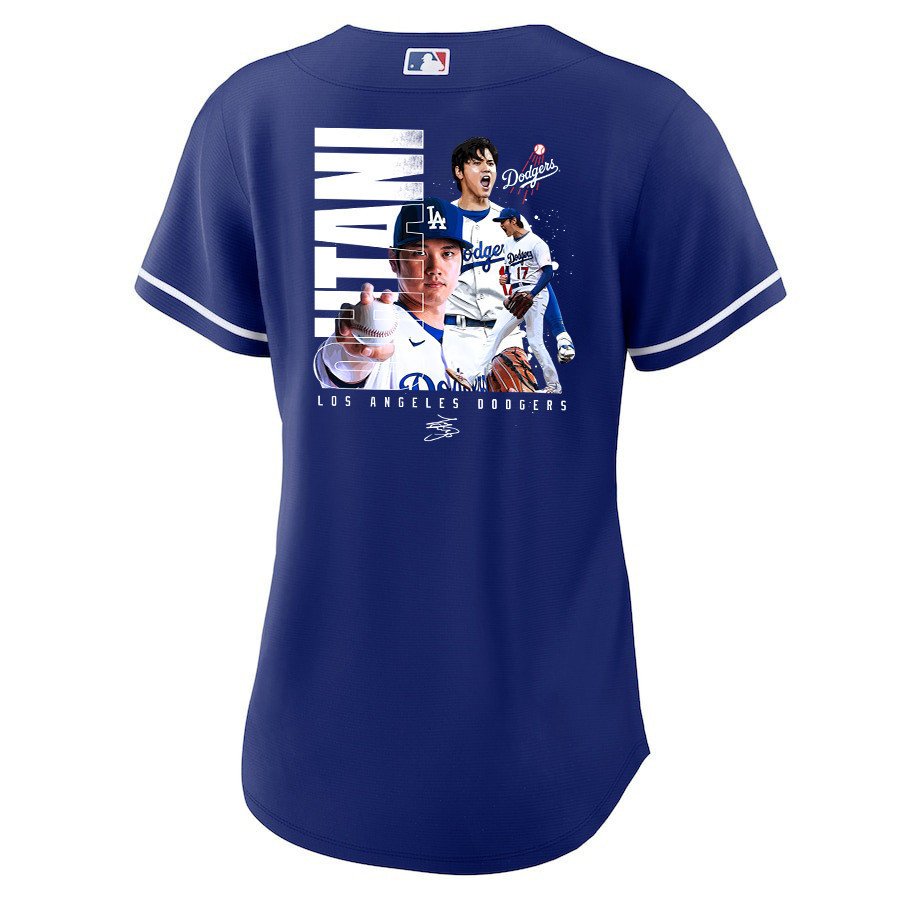 Shohei Ohtani 17 Los Angeles Dodgers Signed Name 2023 Alternate Women Baseball Jersey – Royal