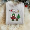 Snoopy Dog Christmas Embroidered Sweatshirt, Cozy Holiday Sweatshirt, Cartoon Winter Shirt, Festive Tree Embroidery