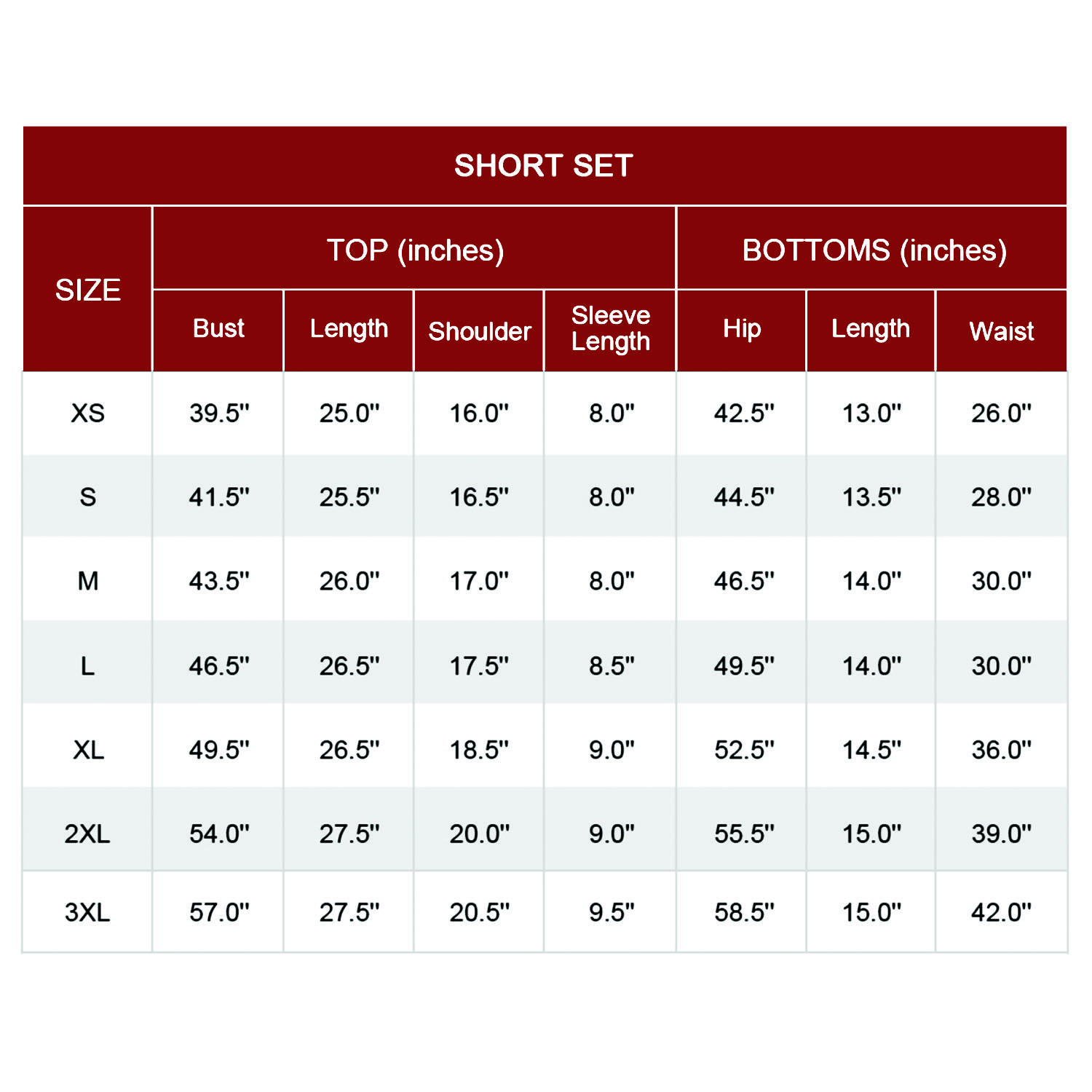 Note: Short-sleeve tops are paired with shorts, and long-sleeve tops are paired with long pants. If you wish to mix and match differently, please notify us when placing your order for assistance.