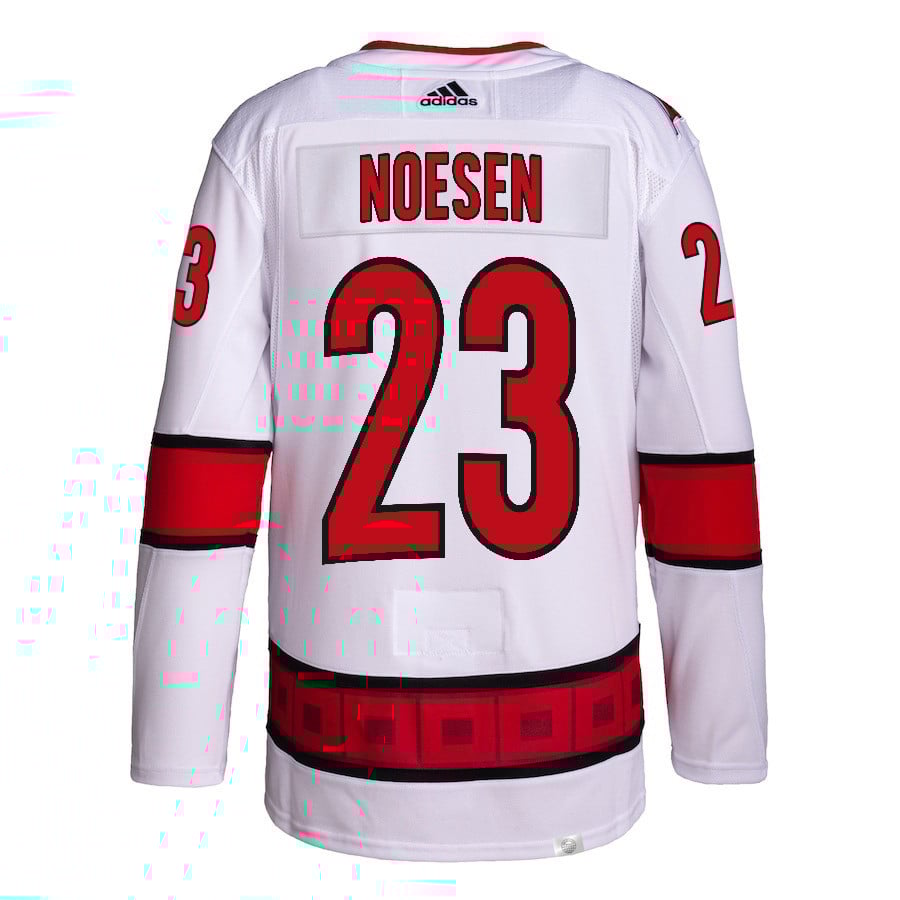 Stefan Noesen 23 Carolina Hurricanes 2024 NHL Playoffs Patch Away Hockey Jersey – Men, White – JS827