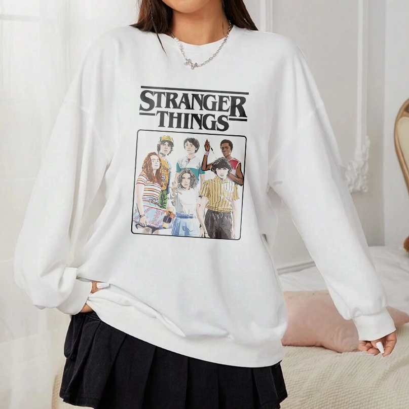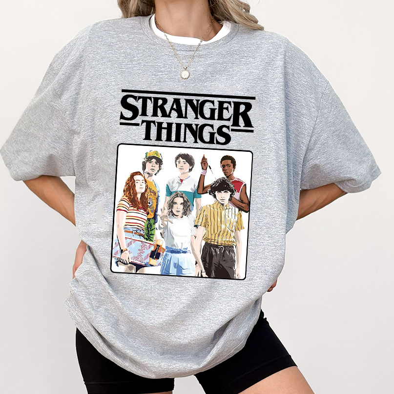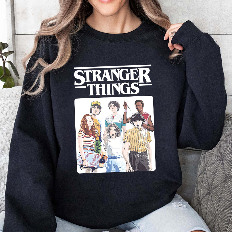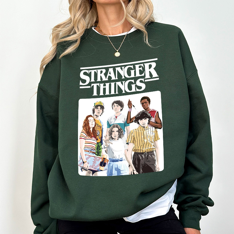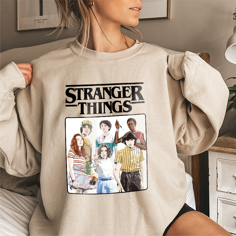 Stranger Things Vintage Eighties Retro Group Shot Title Logo T-Shirt, Sweatshirt, Hoodie