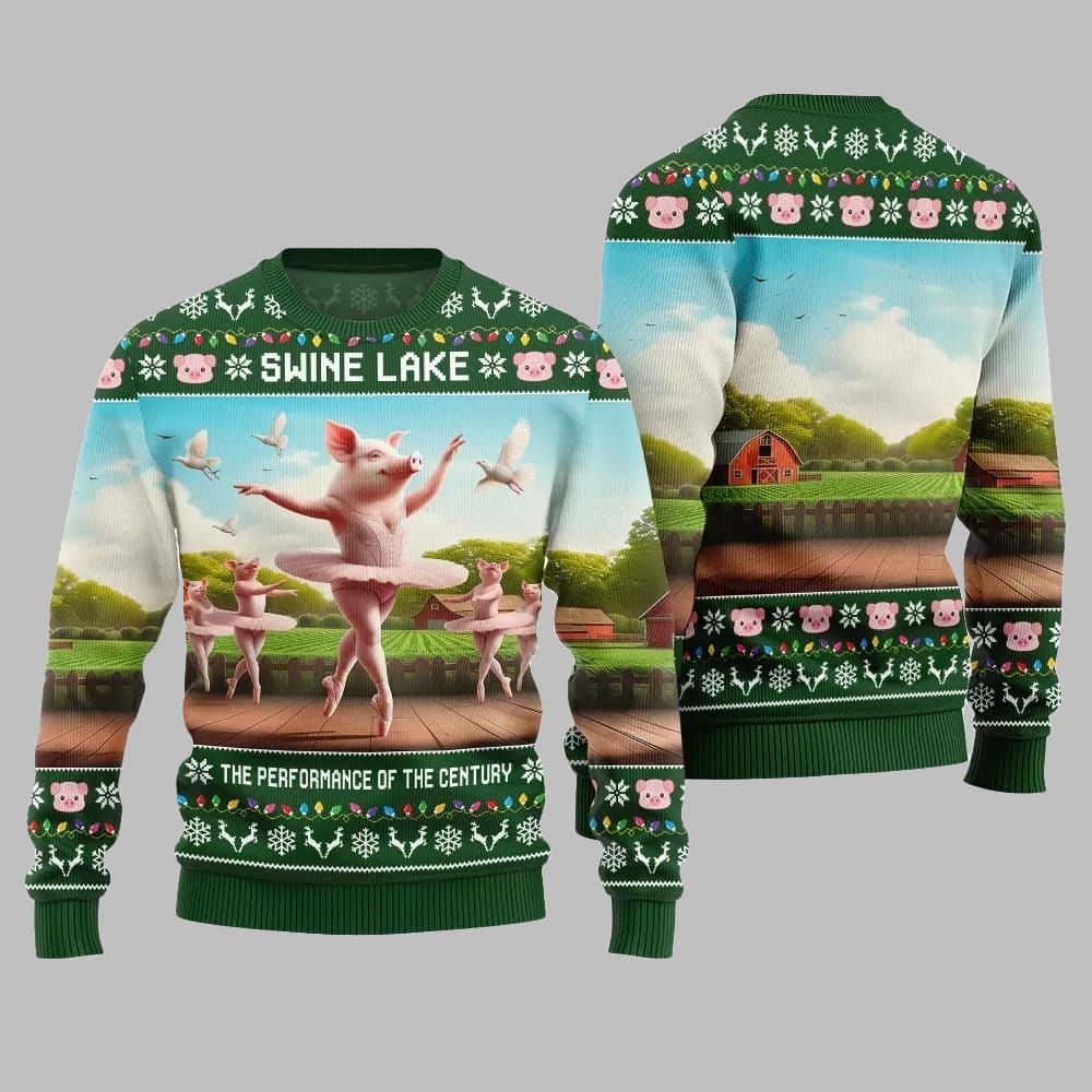 Swine Lake the Performance Of The Century Ugly Christmas Sweater | Take a Bow