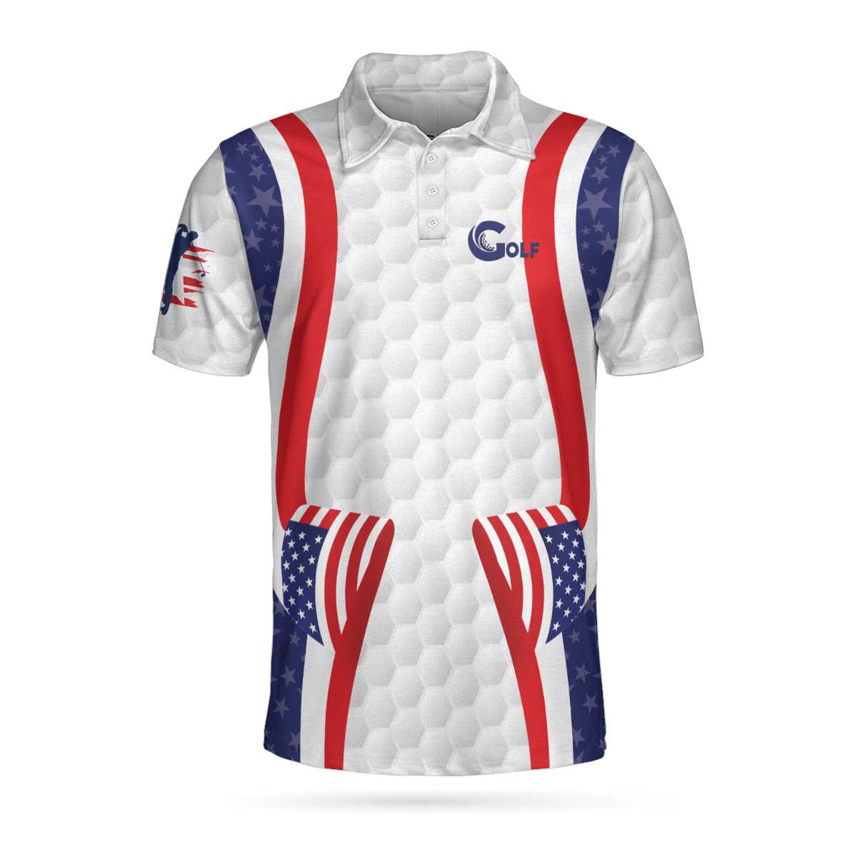 Symmetric Curve American Flag Golf Pattern Polo Shirt, USA Golf Polo Shirt, Patriotic Golf Shirt For Men