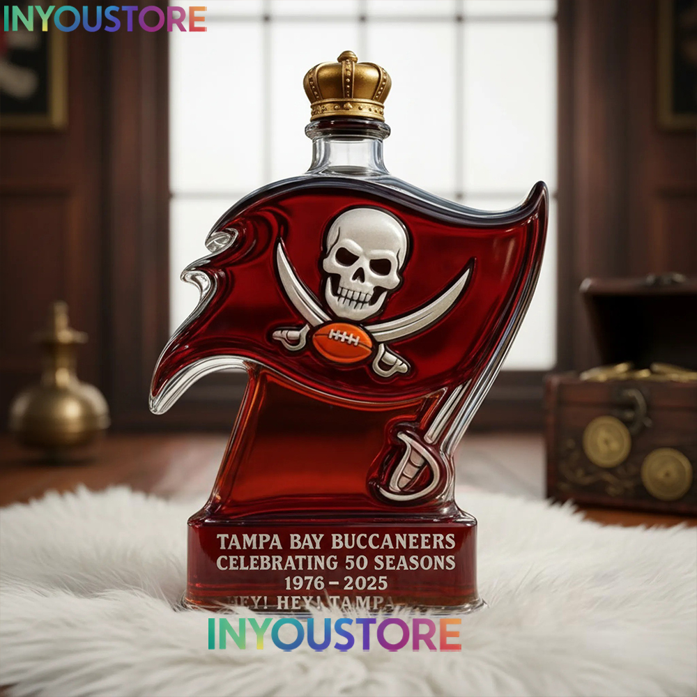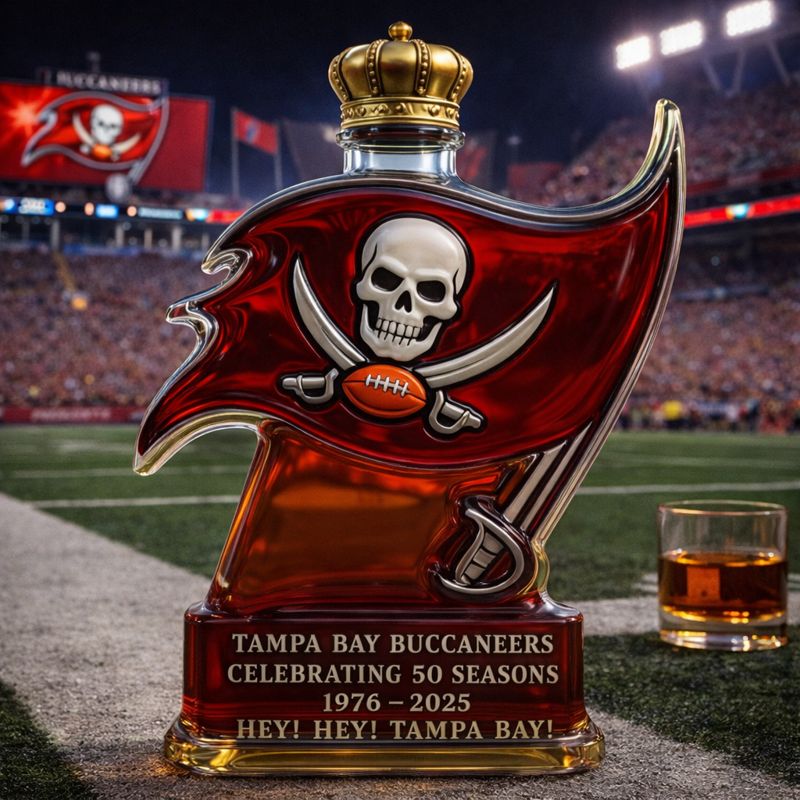 Tampa Bay Buccaneers 50 Seasons “Hey Hey Tampa Bay” Whiskey Bottle celebrates half a century of Buccaneers football history, pride, and unforgettable moments. Inspired by the iconic team chant and 50-season milestone, this bottle is a bold tribute to Buccaneers fans who have stood strong through every era.