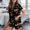 - Short-sleeve, button-front design with a turn-down collar, chest pocket, and contrast piping—classic and stylish for sleepwear, loungewear, or hosting guests.