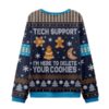 This sweater stars the unsung hero of every office—the tech support wizard. With the phrase “I’m here to delete your cookies,†it humorously nods to both browser hygiene and holiday indulgence, making it a clever crossover between digital life and seasonal tradition.