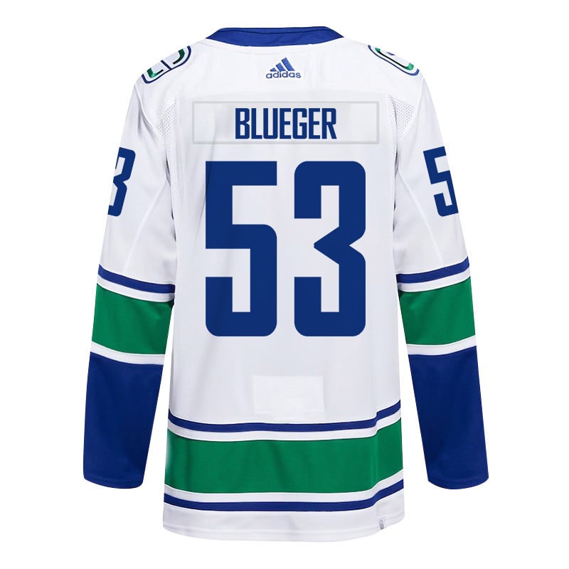 Teddy Blueger 53 Vancouver Canucks 2024 NHL Playoffs Patch Away Hockey Jersey – Men, White – JS399