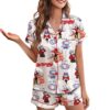 - Short-sleeve, button-front design with a turn-down collar, chest pocket, and contrast piping—classic and stylish for sleepwear, loungewear, or hosting guests.