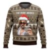 This sweater pays homage to Jeffrey “The Dude†Lebowski, the laid-back protagonist from the Coen Brothers’ 1998 cult film. With his Santa hat, signature shades, and White Russian in hand, the design captures the unforgettable spirit of a character who redefined cinematic cool.