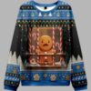 The “The Gingerbread Man Is Watching You In Prison Christmas Ugly Sweater” is a dramatically unique pullover that masterfully clashes cozy Christmas knitwear with a scene of absurd, festive incarceration. The sweater features a dynamic blue and black background, framed by traditional, intricate “ugly sweater” borders showcasing reindeer, pine trees, and miniature gingerbread houses. The central graphic delivers a hilarious punch: a visibly distraught gingerbread man is peering out from behind candy cane “bars” in a snowy, illuminated window, seemingly trapped in a festive “prison.” The implied text or sentiment, which speaks to a watchful, trapped gingerbread man, turns a cheerful holiday character into a figure of dark, whimsical despair. This design is a brilliant piece of visual comedy, subverting the overly sweet nature of the holidays with a slice of dark, unexpected humor. It transforms the sweater from mere apparel into a statement of creative, offbeat wit, symbolizing the wearer’s appreciation for strange narratives and unconventional humor during the most predictable time of the year. It’s a warm, comfortable, and immediately eye-catching piece that is perfect for anyone who appreciates clever satire and enjoys making an utterly unique statement.