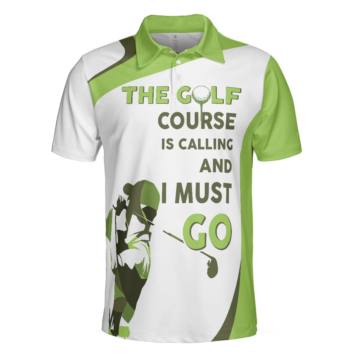 The Golf Course Is Calling And I Must Go Men Polo Shirt, White And Green Golf Shirt For Men