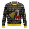 The central graphic is a large, detailed rendition of Katsushika Hokusai’s famous woodblock print, The Great Wave off Kanagawa. The massive, frothing wave dominates the center of the sweater, rendered in shades of blue and white, perfectly capturing the dynamic power of the sea. Subtly integrated into the scene are festive elements: the classic wave crests toward a snow-capped Mount Fuji, and the words “MERRY CHRISTMAS” are printed within the foam. The entire image is a masterful blend of 19th-century Japanese art and 21st-century holiday whimsy, creating a powerful, unexpected, and truly memorable visual.