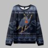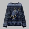 Every element of this sweater has been carefully crafted to delight fans of the paranormal and lovers of unique design. The classic Fair Isle-style borders feature snowflakes interspersed with subtle moth icons and cryptic symbols, creating a pattern that rewards a closer look. The bold, varsity-style text “THE MAN THE MOTH THE LEGEND” frames the central artwork, leaving no doubt as to the sweater’s allegiance. The color palette—a sophisticated mix of deep blues, charcoal grays, electric yellows, and a haunting orange—ensures it’s festive without being gaudy, making it a stylish choice for any casual holiday event.