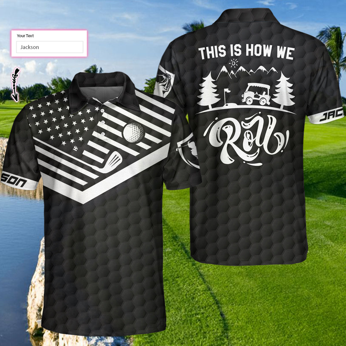 This Is How We Roll Custom Polo Shirt, Personalized Black American Flag Polo Shirt, Camping Shirt For Men