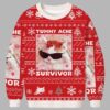 The “Tummy Ache Survivor Funny Cat Meme Christmas Ugly Sweater” is a vibrant, cozy pullover that flawlessly fuses traditional holiday knitwear with sharp, modern internet humor. The sweater features a bold, classic red and white background, framed by traditional “ugly sweater” Fair Isle patterns of snowflakes and miniature Christmas trees, setting a festive scene. The centerpiece delivers the ultimate, dry-witted punchline: a large, high-resolution photo of a charismatic cat wearing oversized sunglasses, exuding an air of cool, self-satisfied relief. Above and below this iconic image, the bold text declares the ultimate victory: “TUMMY ACHE” and “SURVIVOR.” This design is a masterstroke of ironic comedy, perfectly capturing the universal feeling of discomfort after eating too much festive food, and transforming that struggle into a moment of triumphant, self-aware cool. It symbolizes the wearer’s fun-loving spirit, their appreciation for dry, meme-based humor, and the shared, slightly regrettable joy of holiday indulgence. It’s a warm, comfortable, and immediately eye-catching piece that is perfect for the foodie, the holiday party veteran, the cat lover, or anyone ready to be the center of a hilarious, sympathetic conversation about going back for seconds (and thirds).