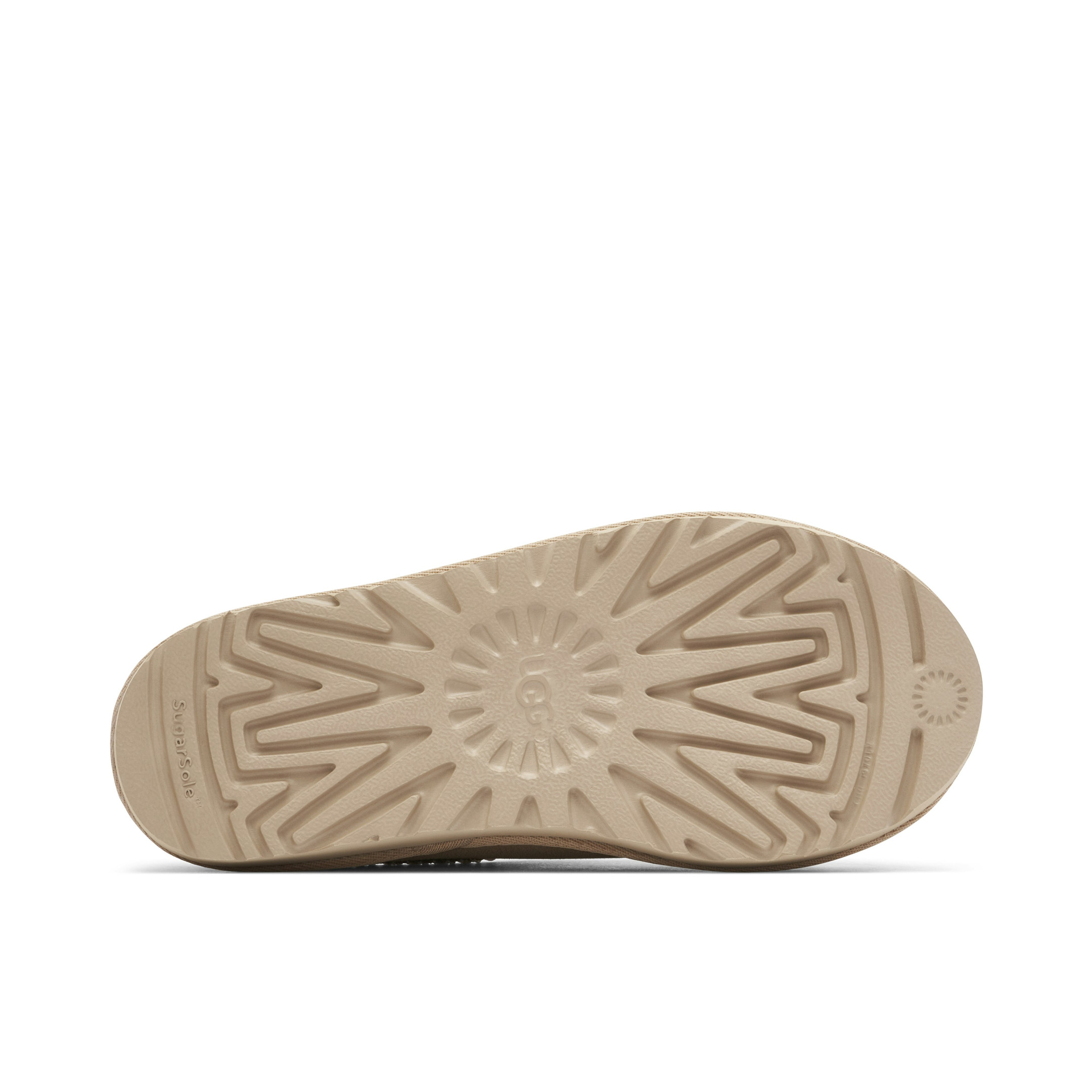 Everyday comfort has never been so stylish, thanks to the UGG Tasman Slipper Driftwood design. It's an elegant take on the classic slipper, guaranteeing comfort anywhere at any time. The popular slipper has received a plush update, as the premium suede upper has a sophisticated Driftwood colour that harmonises with a decorative white and driftwood braid along the collar. The super-comfortable slippers can be worn year-round for guaranteed comfort, as it offers a fluffy Driftwood sheepskin lining and its signature UGGPure wool insole in a fresh cream hue. There is more to the UGG Tasman than an attractive, versatile design and a comfortable fit. The slippers are well-known for their longevity, which is due to their durable outsole and premium materials. The embossed UGG logo appearing near the lateral collar makes sure you know you're wearing a legit pair of UGG Driftwood Tasman Slippers.