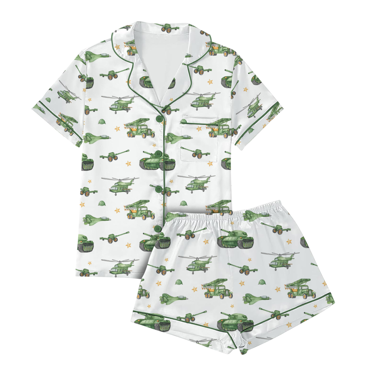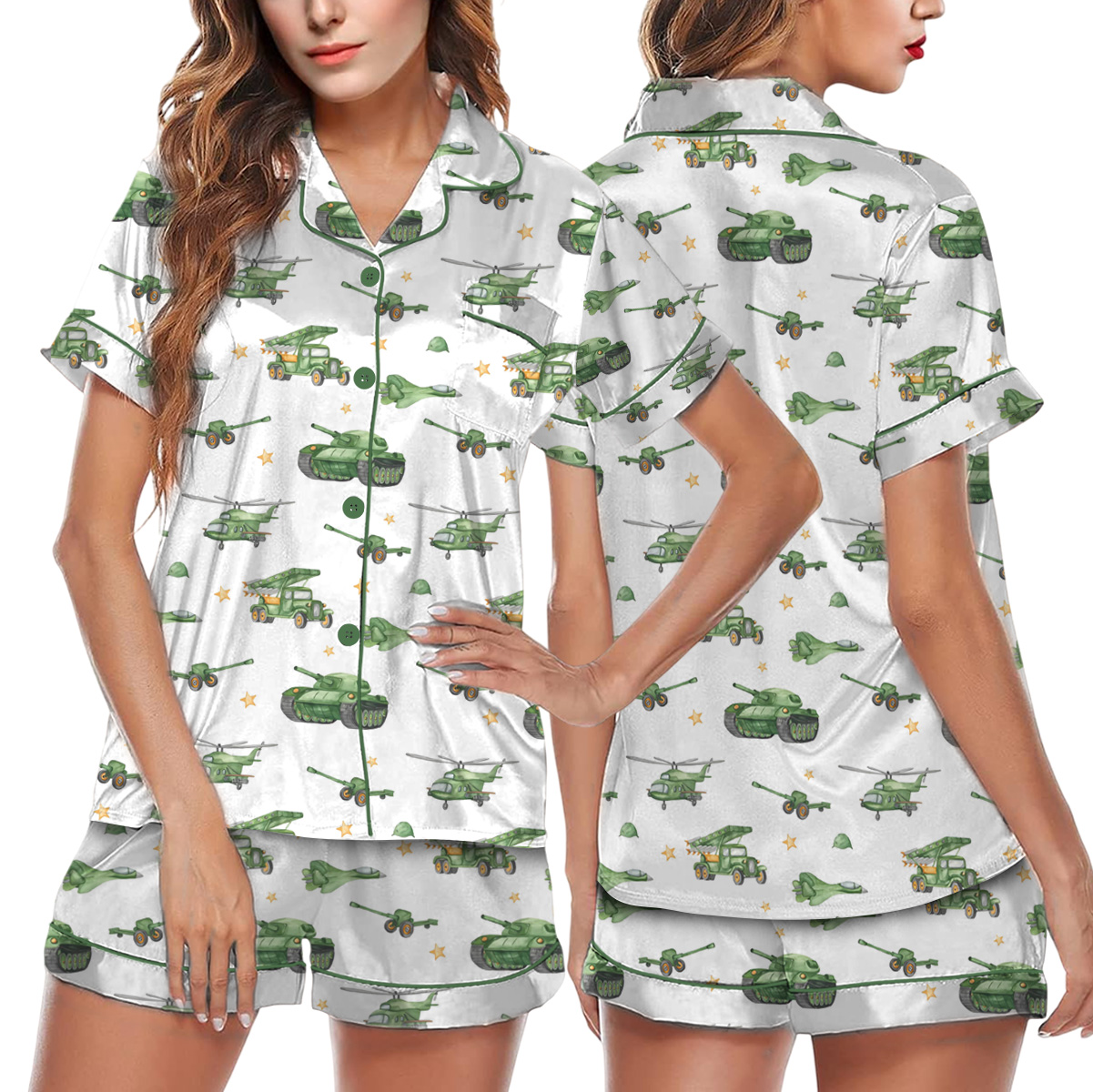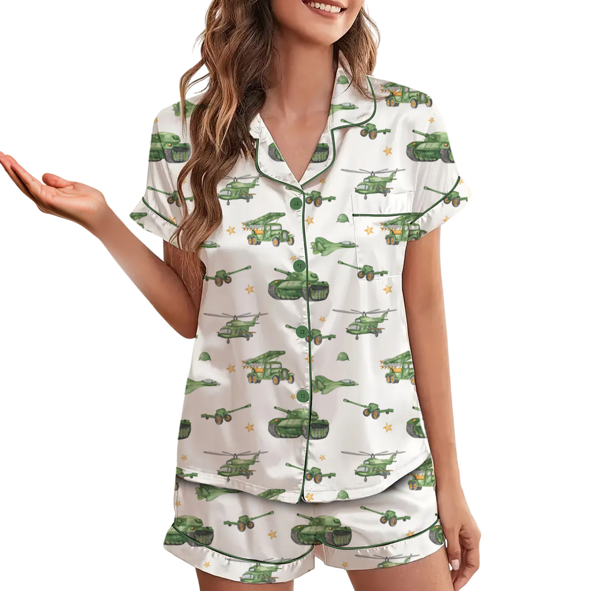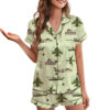 - Short-sleeve, button-front design with a turn-down collar, chest pocket, and contrast piping—classic and stylish for sleepwear, loungewear, or hosting guests.
