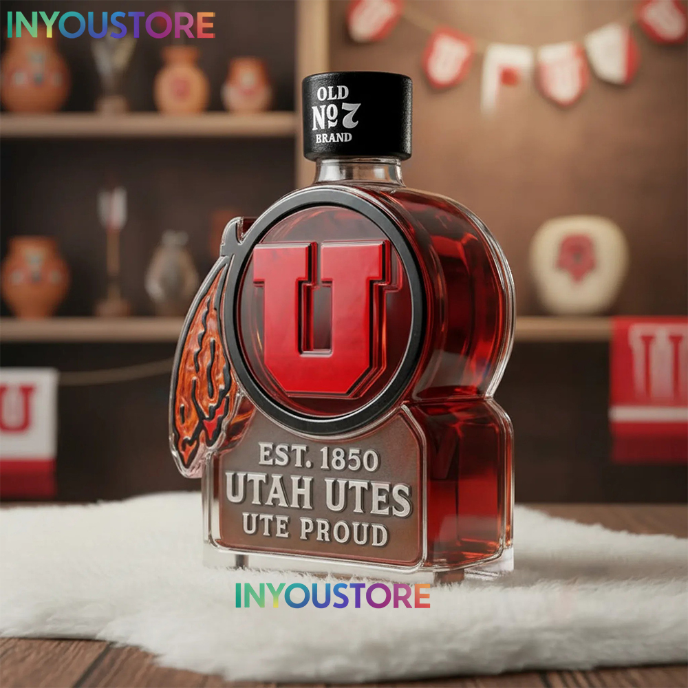 Crafted from high-quality glass with detailed Utes-inspired artwork, this bottle is perfect for holding whiskey, bourbon, or other favorite spirits. Whether displayed in a home bar, fan cave, or office, it makes a striking statement that showcases true Utah loyalty.