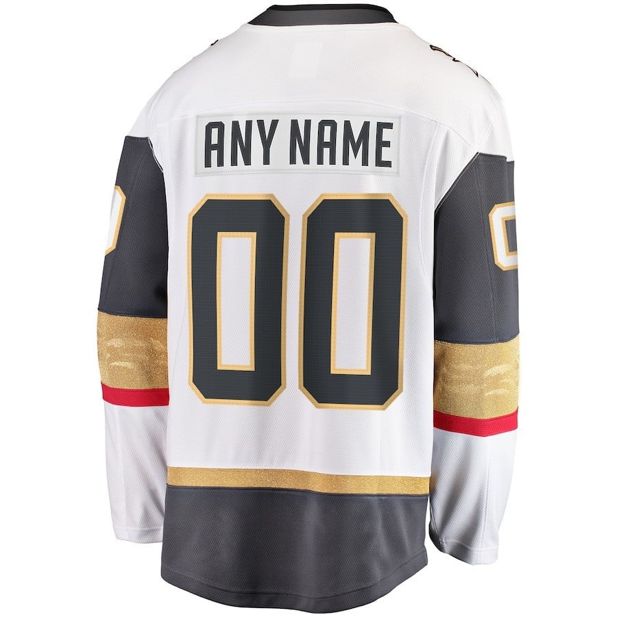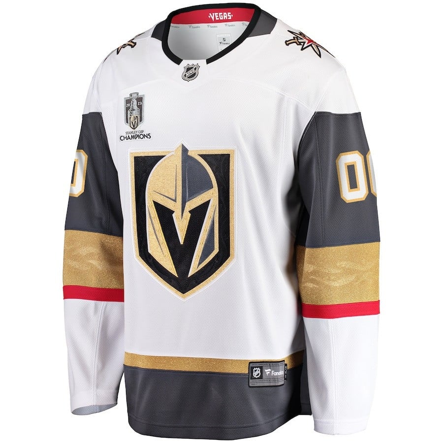Vegas Golden Knights 2023 Stanley Cup Champions Patch Custom 00 Away Breakaway Custom Hockey Jersey – White – JS331