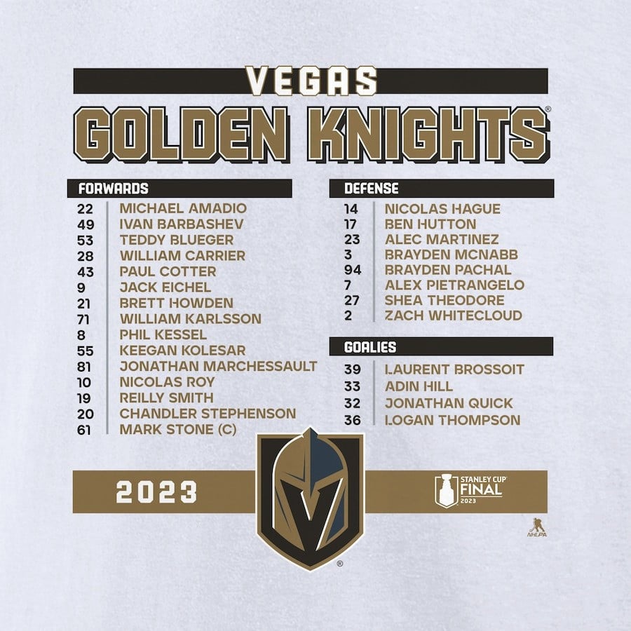 Vegas Golden Knights 2023 Stanley Cup Final Roster T-Shirt – White – JS398