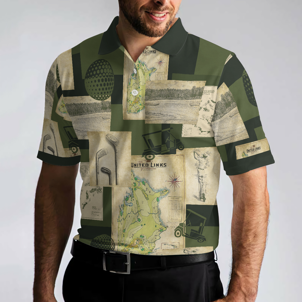 Vintage Golf Art All Over Print Polo Shirt, Vintage Golf Map And Sketch Polo Shirt, Best Golf Shirt For Men