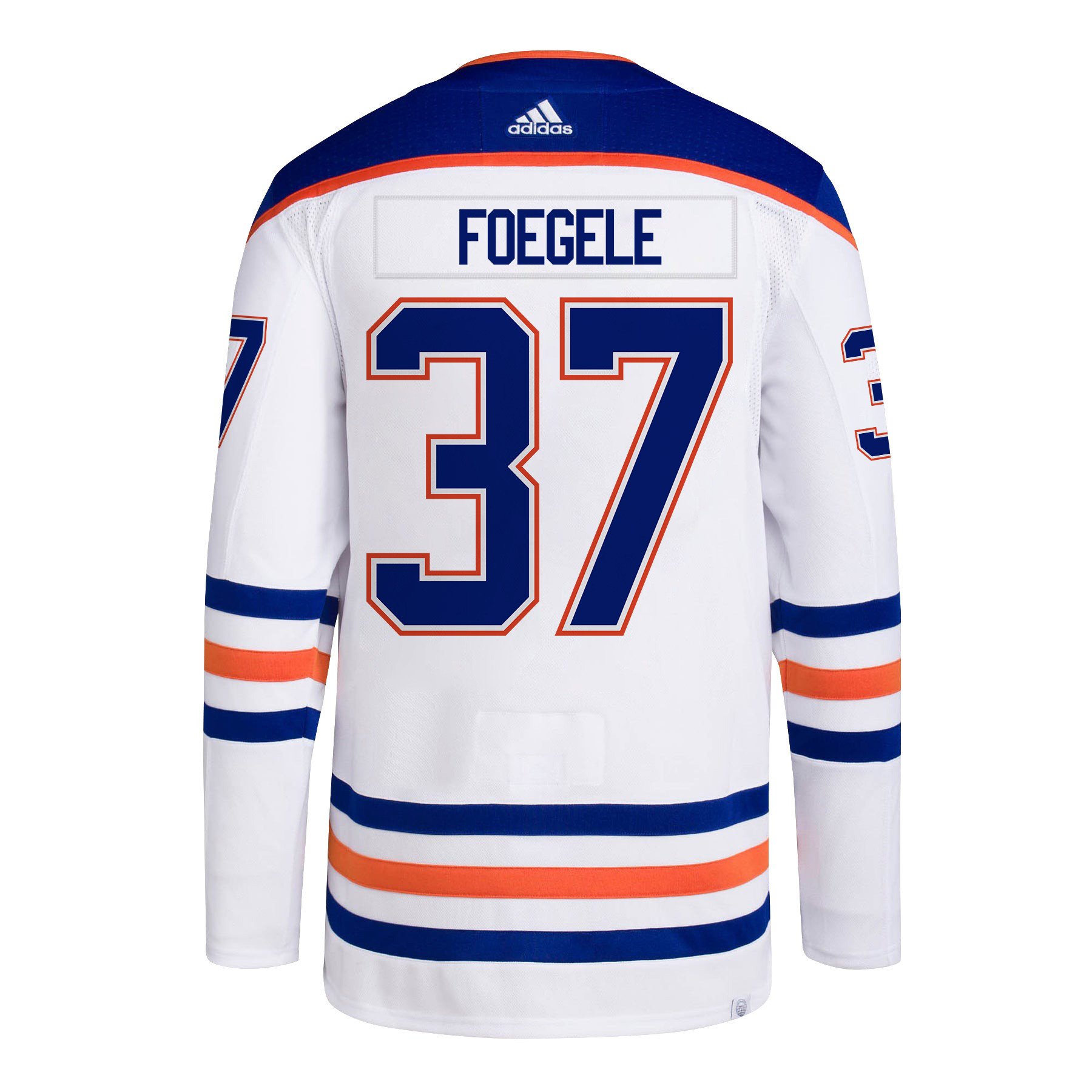 Warren Foegele 37 Edmonton Oilers 2024 NHL Playoffs Patch Away Hockey Jersey – Men, White – JS565