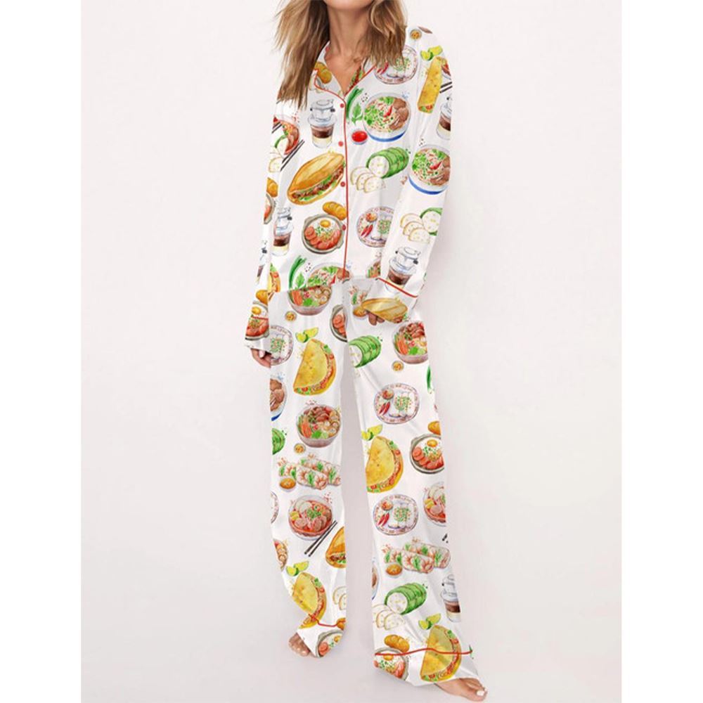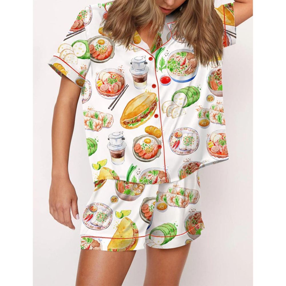 Watercolor Food Satin Pajama Set For Women