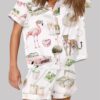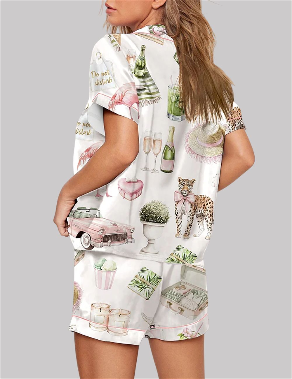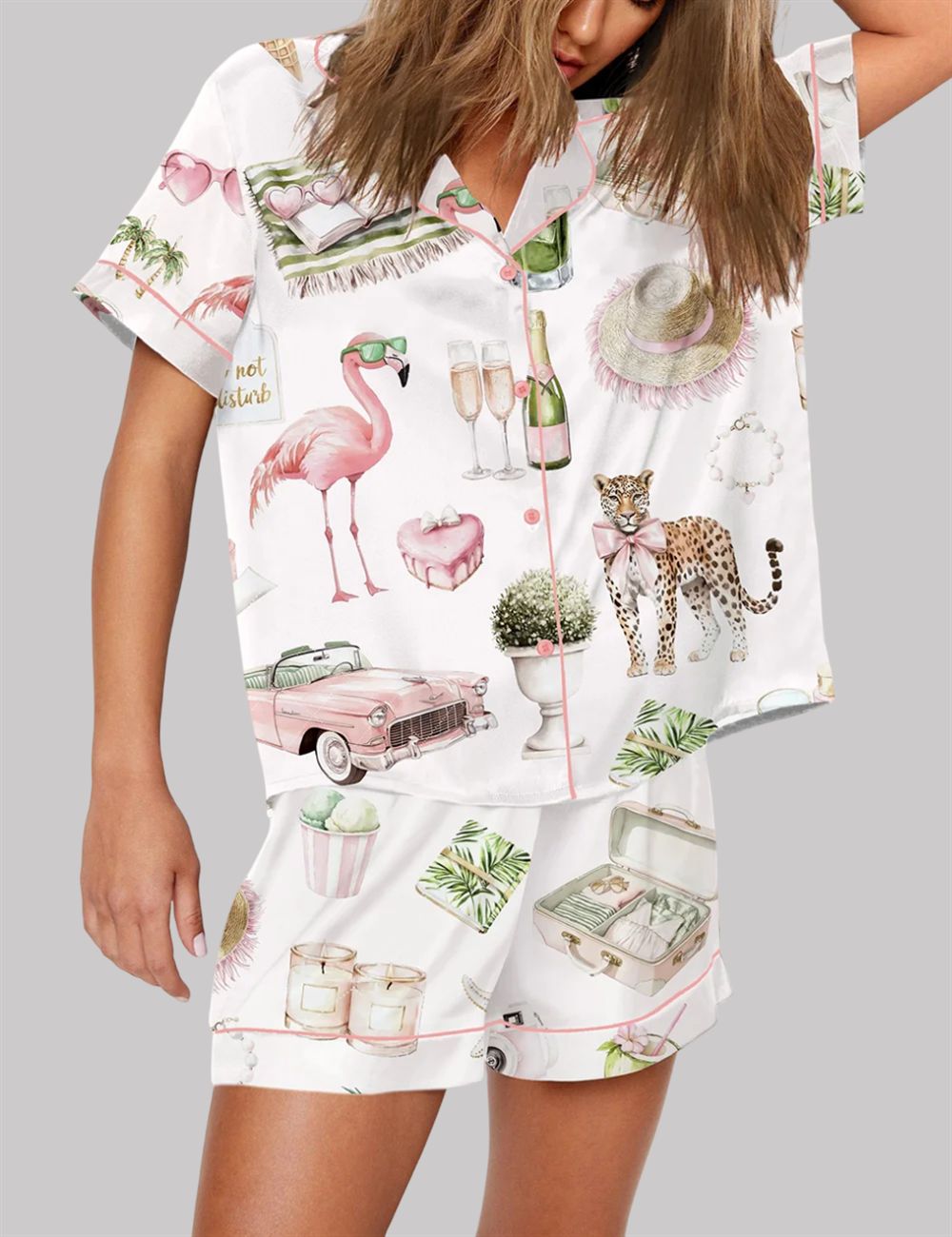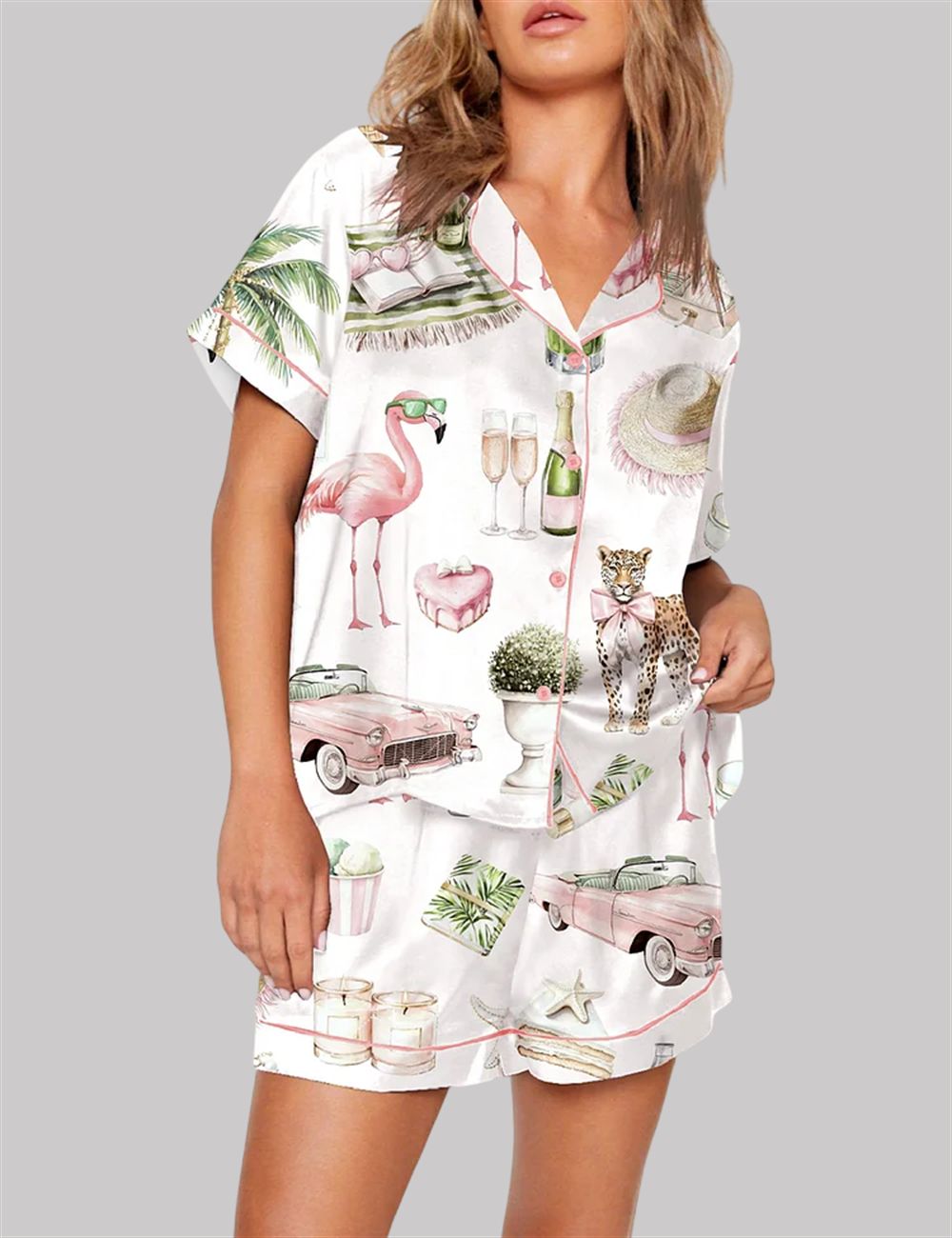 Watercolor Palm Club Summer Miami Beach Vacation Pajama Set