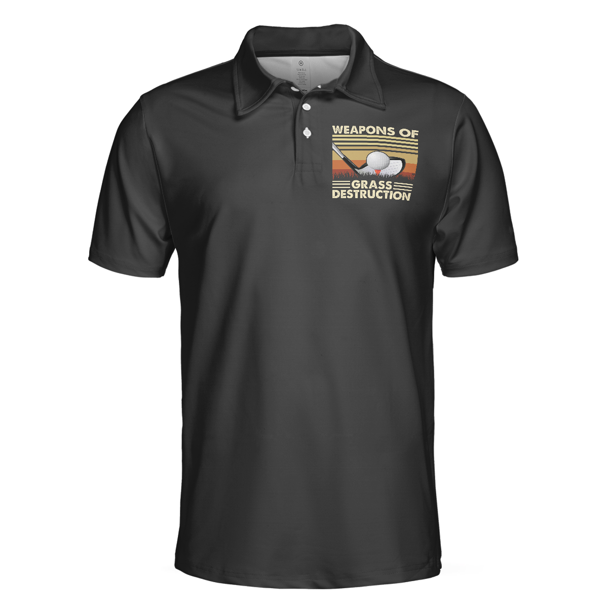 Weapons Of Grass Destruction Short Sleeve Polo Shirt, Vintage Chess Graphic Black Polo Shirt, Best Golf Shirt For Men