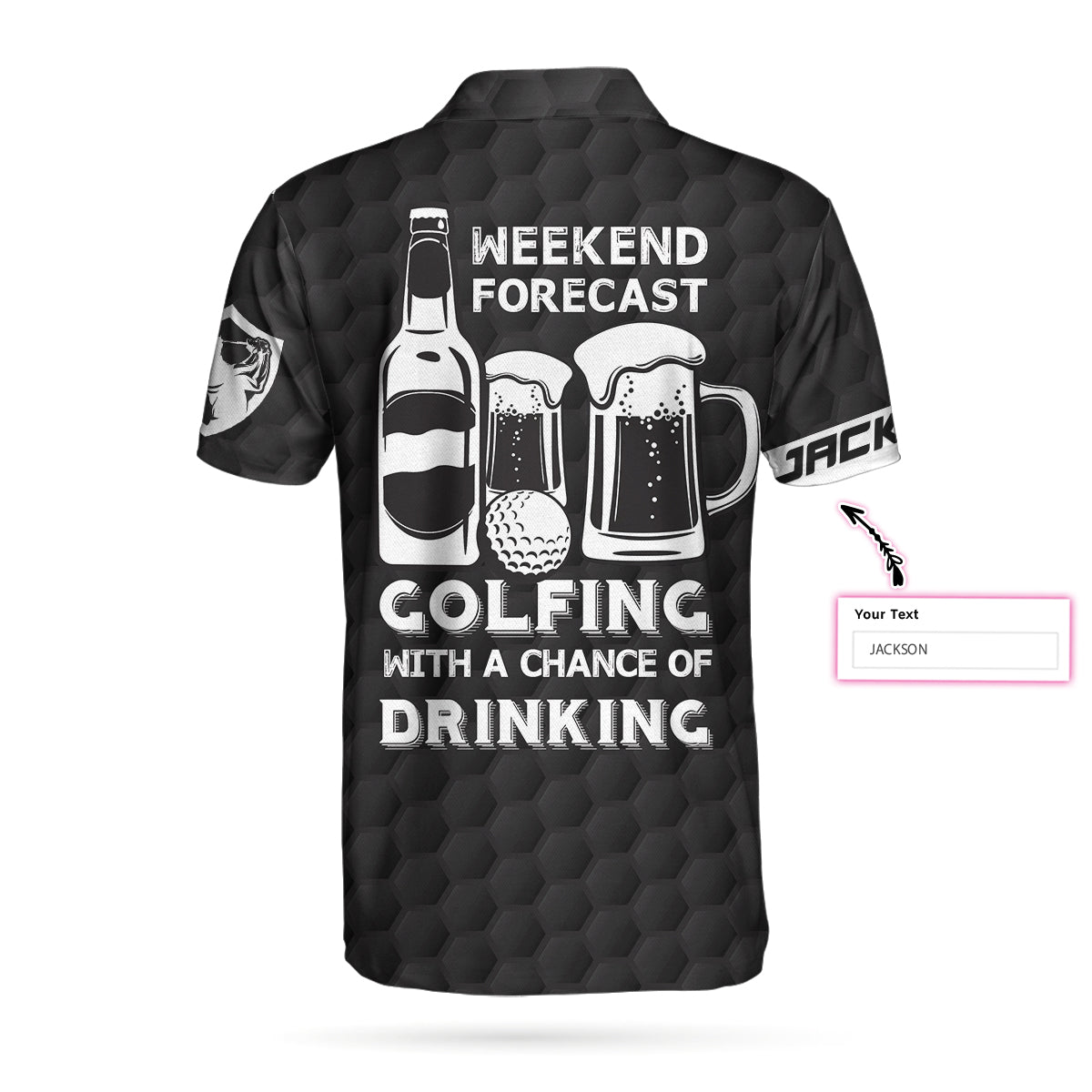 Weekend Forecast Drinking Custom Golf Polo Shirt, Personalized Black American Flag Golf Shirt For Men