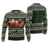 This Whose Turn Thanksgiving Day Ugly Sweater features a classic Christmas-inspired pattern with snowflakes and fair isle details in a rich, holiday green. But the real showstopper is the comical centerpiece: Santa Claus and a referee squaring off with a determined turkey, all under the playful question, “Whose Turn?” Crafted from high-quality materials, this sweater is not only comfortable and warm but also guaranteed to turn heads and spark conversations at any Thanksgiving gathering.