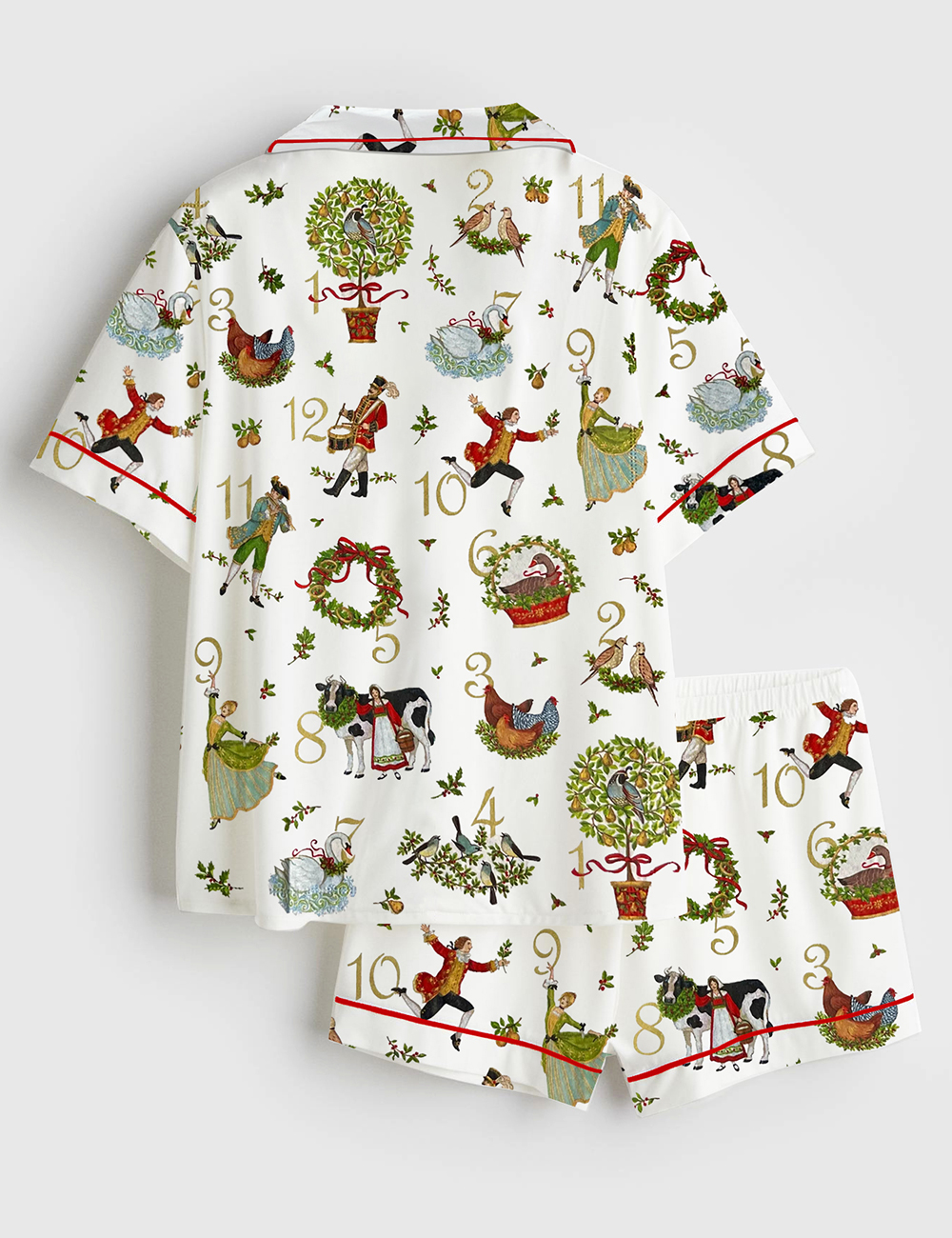 Women’s 12 Days Of Christmas Short Sleeve Satin Pajama Set