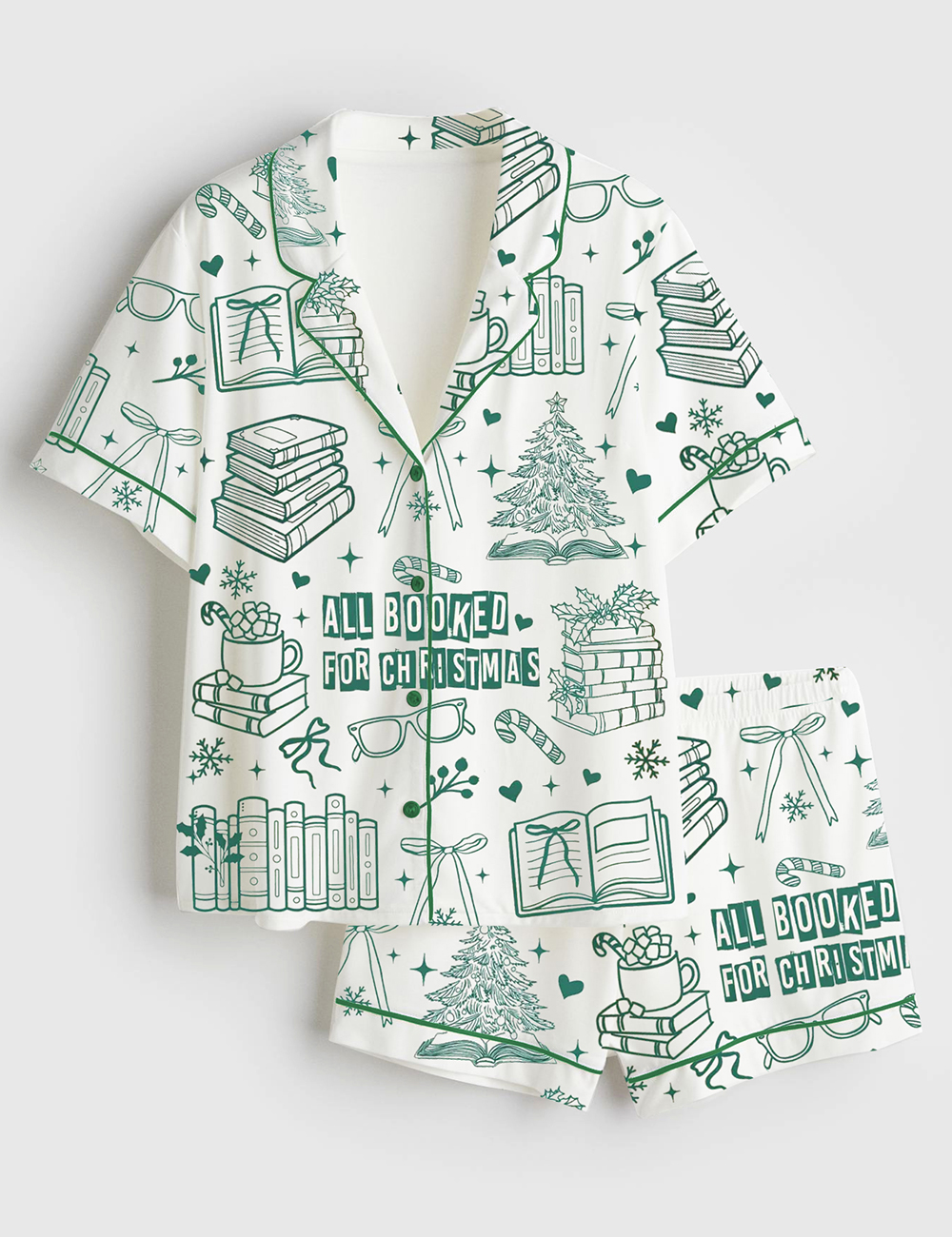 Women’s All Booked For Christmas Short Sleeve Satin Pajama Set