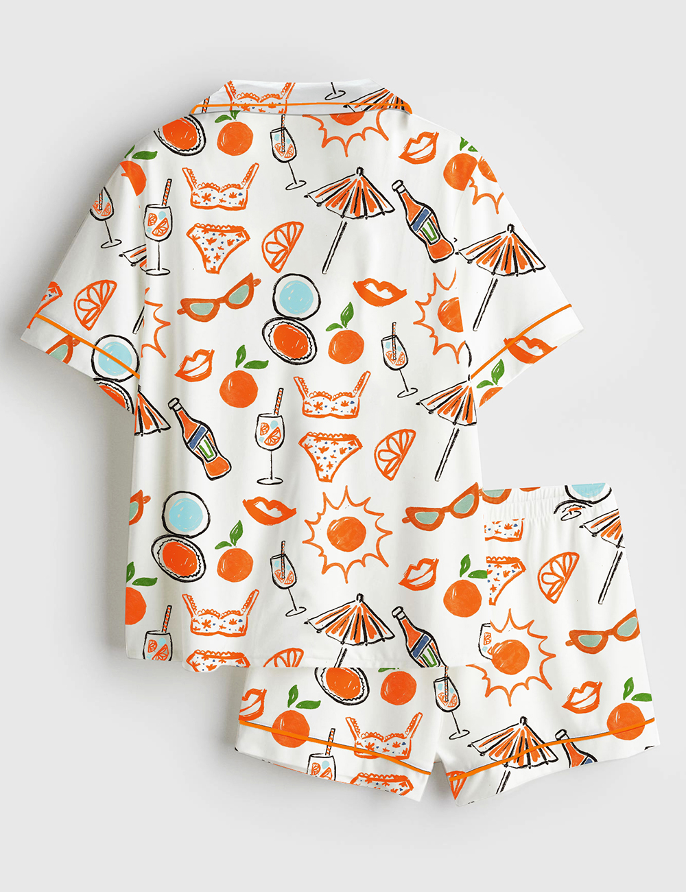 Women’s Aperol Bachelorette Party Beach Tropical Summer Bridal Party Short Sleeve Satin Pajama Set