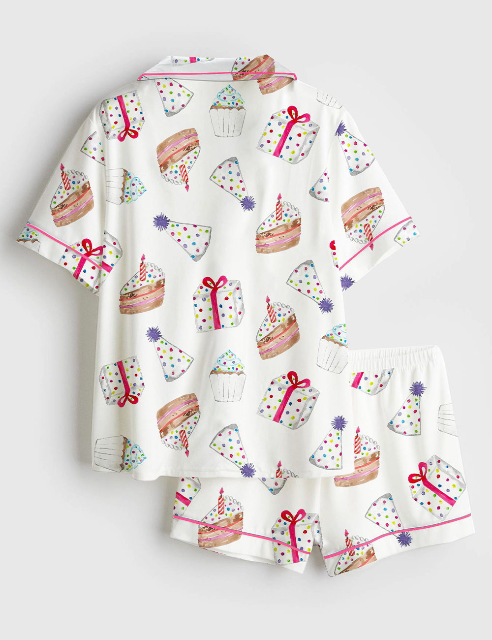 Women’s Birthday Party Short Sleeve Satin Pajama Set