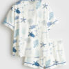 Women’s Summer Beach Ocean Coastal Summer Nautical Turtle Conch Bow Bachelorette Short Sleeve Satin Pajama Set