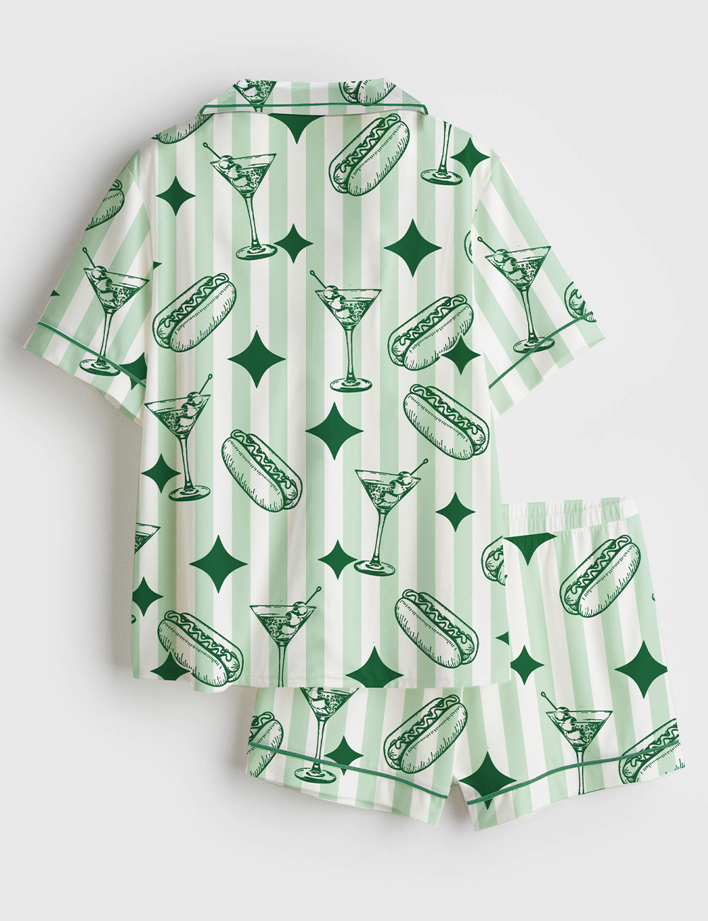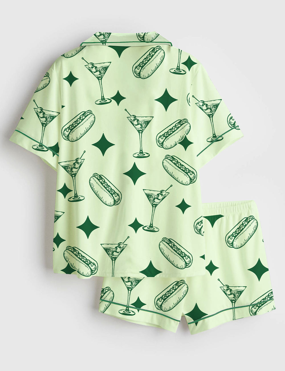Women’s Tinis And Weenies Dirty Martini Party Print Short Sleeve Satin Pajama Set