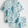 Women’s Whale Shark Coral Reef Ocean Coastal Marine Summer Beach Vibes Print Short Sleeve Satin Pajama Set