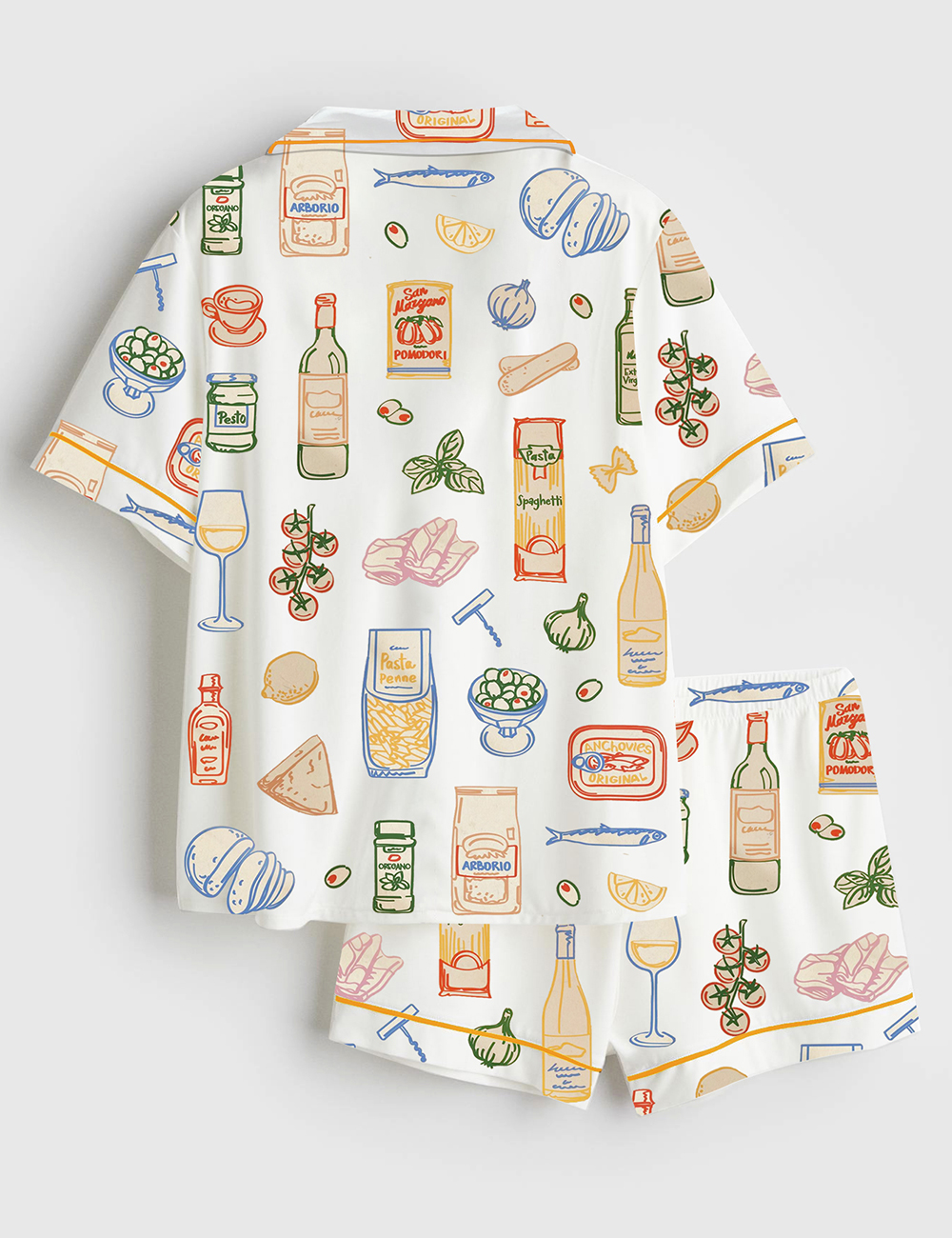 Women’s Whimsical Ingredient Sketch Italian San Marzano Mediterranean Food Short Sleeve Satin Pajama Set