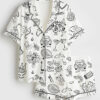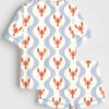 Women’s Whimsical Lobster Nautical Beach Coastal Marine Print Short Sleeve Satin Pajama Set