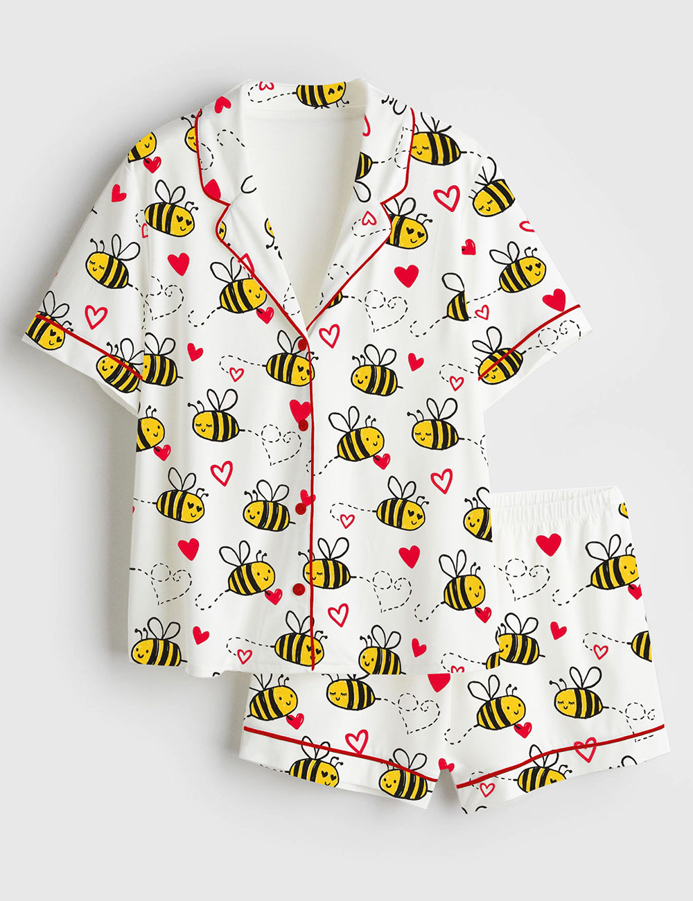 Women’s Bee Kind Love Heart Valentine’s Day Short Sleeve Satin Pajama Set