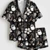 Women’s Blue Chinoiserie Toile De Jouy Safari Elephant And Deer Print Long Sleeve Satin Pajama Set