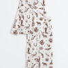 Women’s Boho 4th Of July Preppy Strawberry Patriotic Bow Print Long Sleeve Satin Pajamas Set